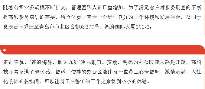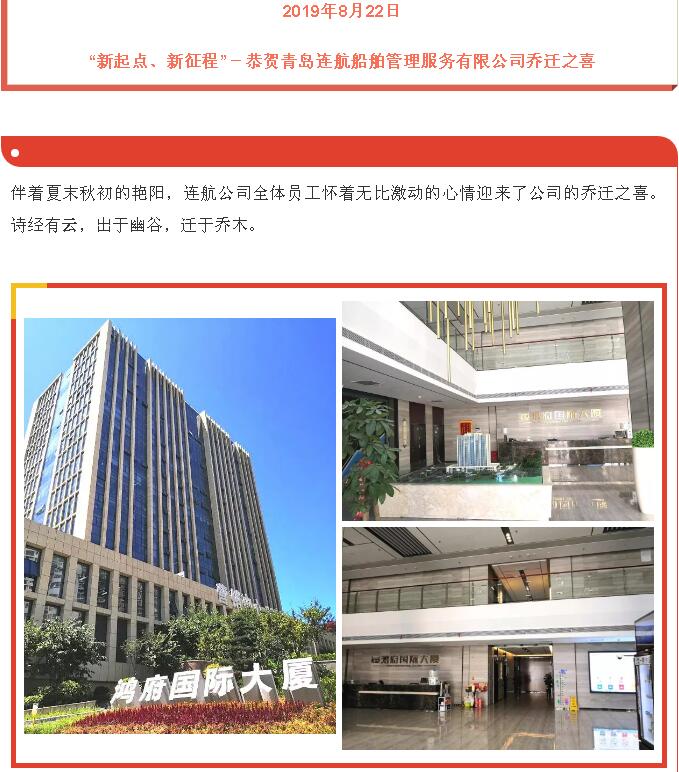 “新起點、新征程”-恭賀青島連航船舶管理服務(wù)有限公司喬遷之喜